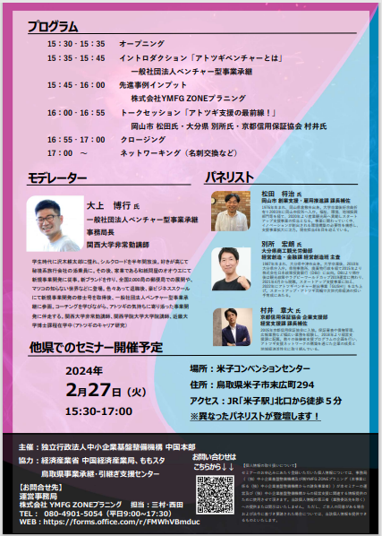 【米子会場】2024年2月27日(火曜)15時30分~17時00分