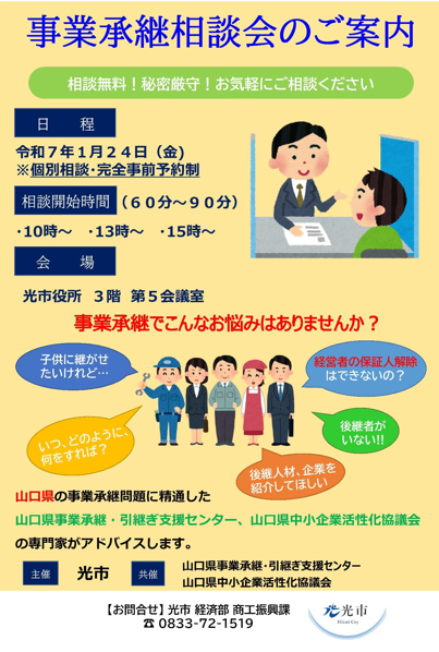 【令和7年1月24日(金)】光市・事業承継個別相談会のご案内