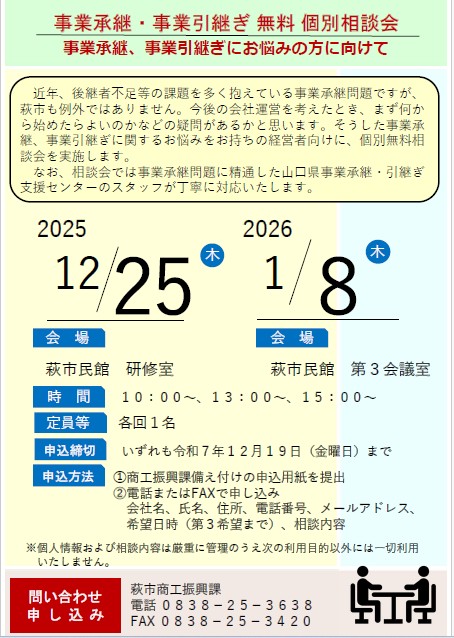 事業承継・事業引継ぎ個別無料相談会を開催いたします。 – 萩市ホームページ