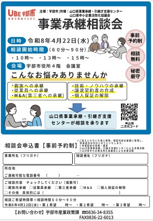 【令和8年4月22日(水)】宇部市・事業承継相談会